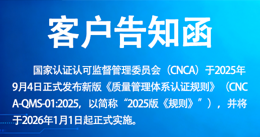 關(guān)于新版《質(zhì)量管理體系認(rèn)證規(guī)則》客戶告知函